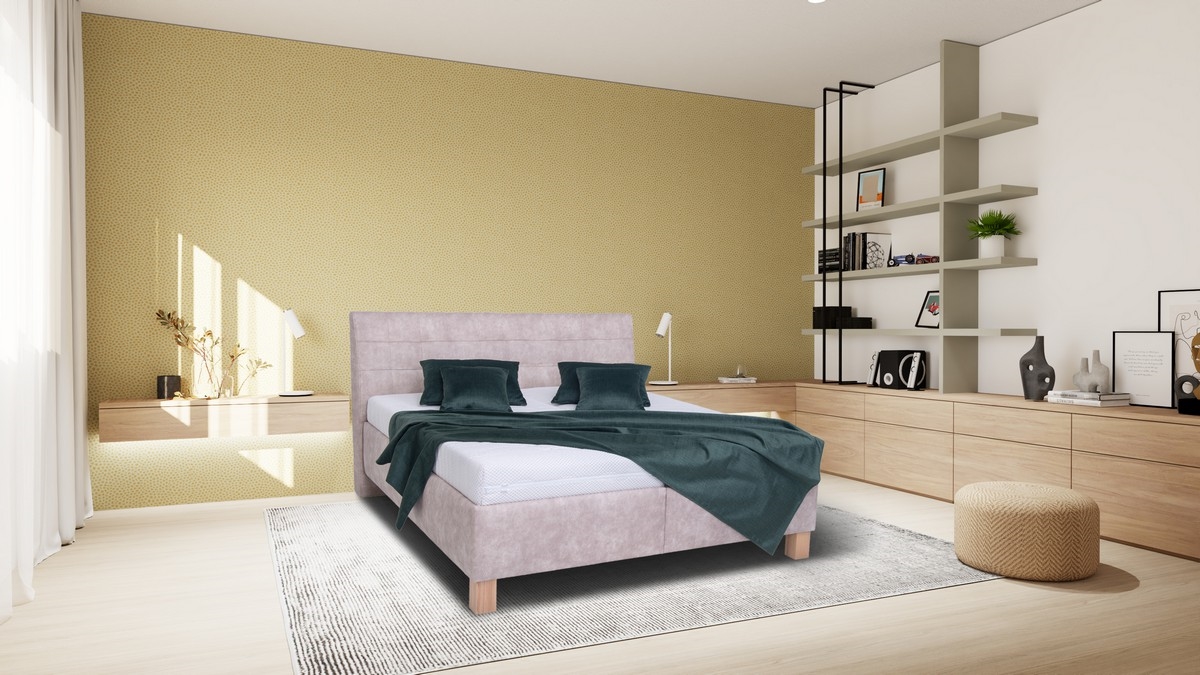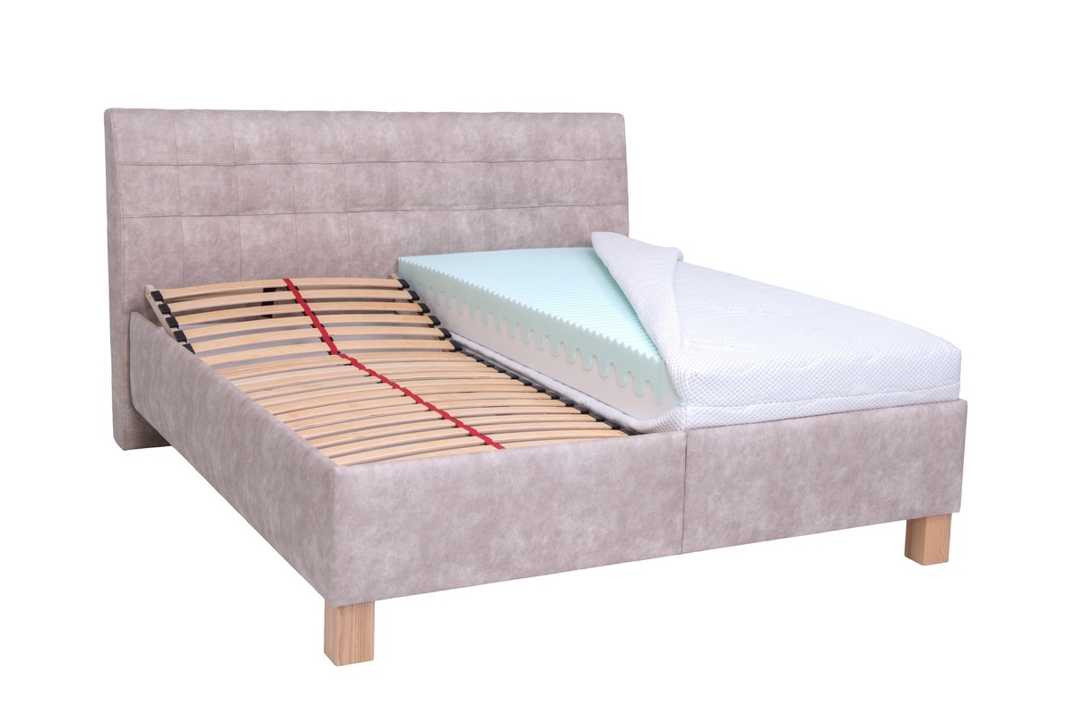 • Polsterēta gulta ar matraci un ietilpīgu glabāšanas nodalījumu VIOLET 180x200 cm bēša