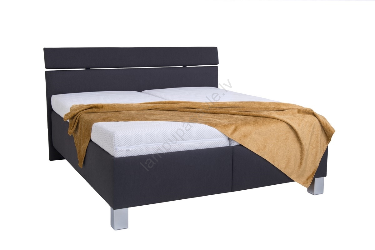 • Polsterēta divvietīga gulta ar brīvi novietotām matracēm piedāvā maksimālu komfortu un praktiskas funkcijas nevainojamai atpūtai.