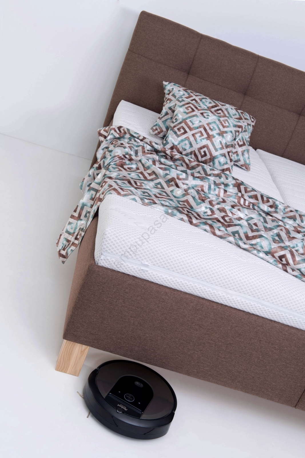 • Polsterēta gulta MARIA 180x200 cm ar matraci un uzglabāšanas nodalījumu, brūna