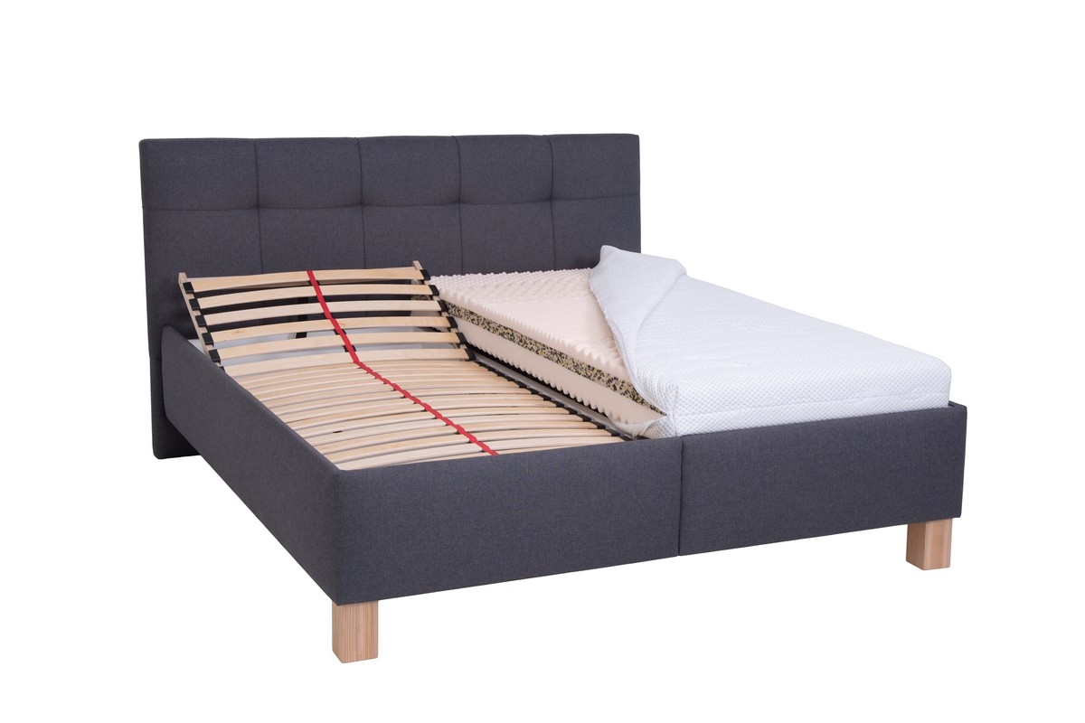 • Polsterēta gulta ar matraci un ietilpīgu uzglabāšanas vietu MARIA 180x200 cm pelēka