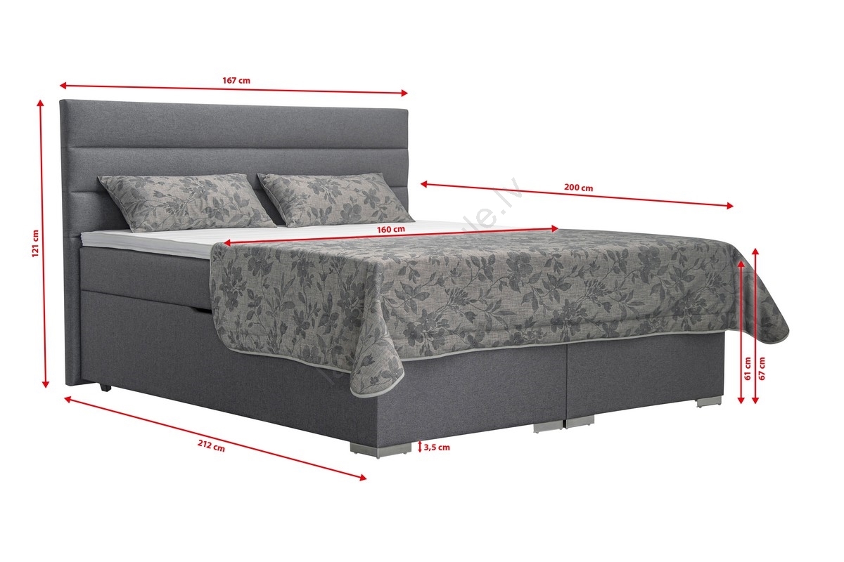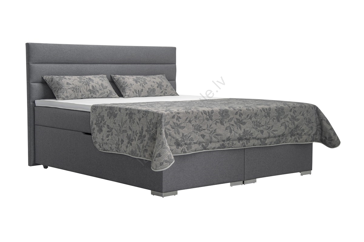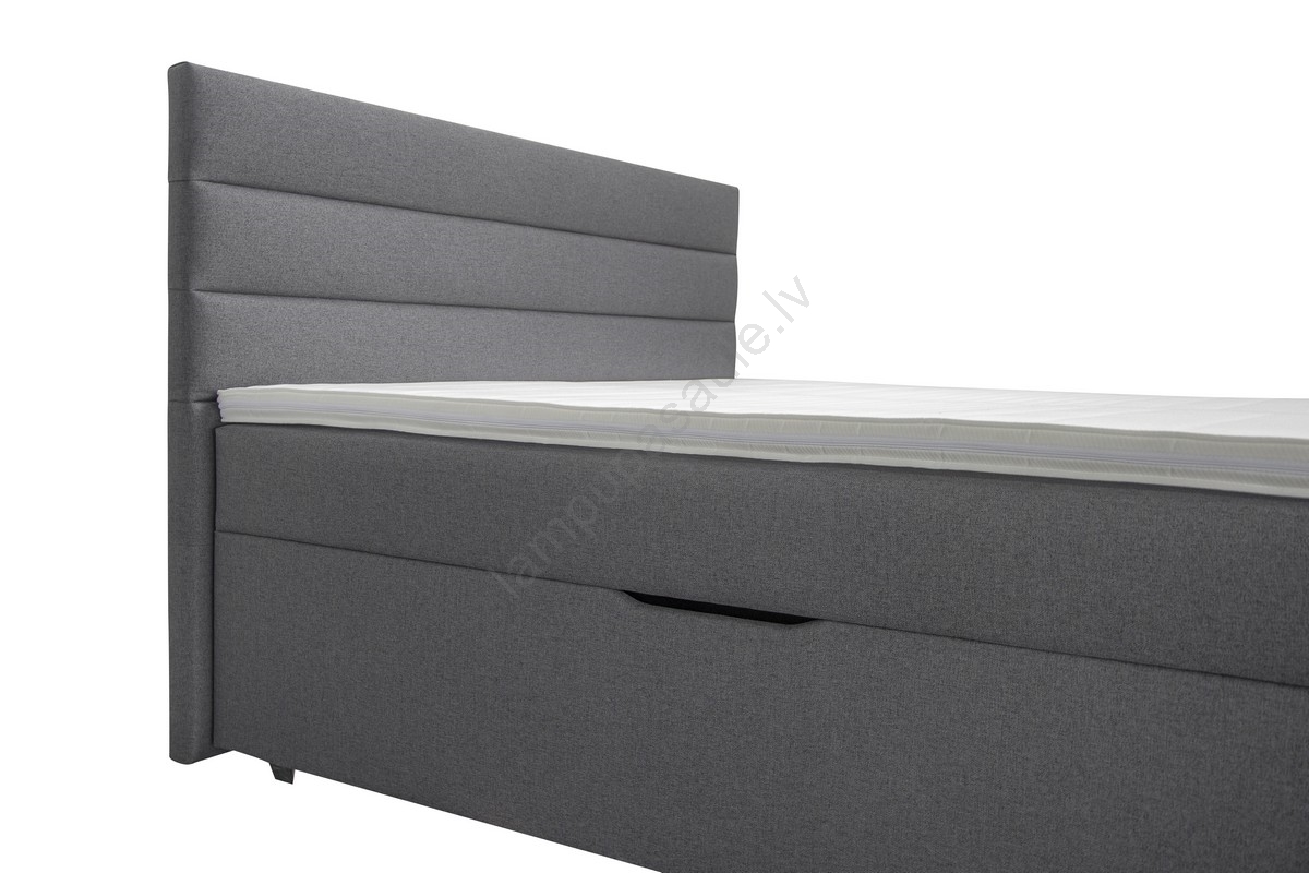 Polsterēta gulta NEW BOLERO ar uzglabāšanas nodalījumu un virsmas matračiem 160x200 cm, pelēka