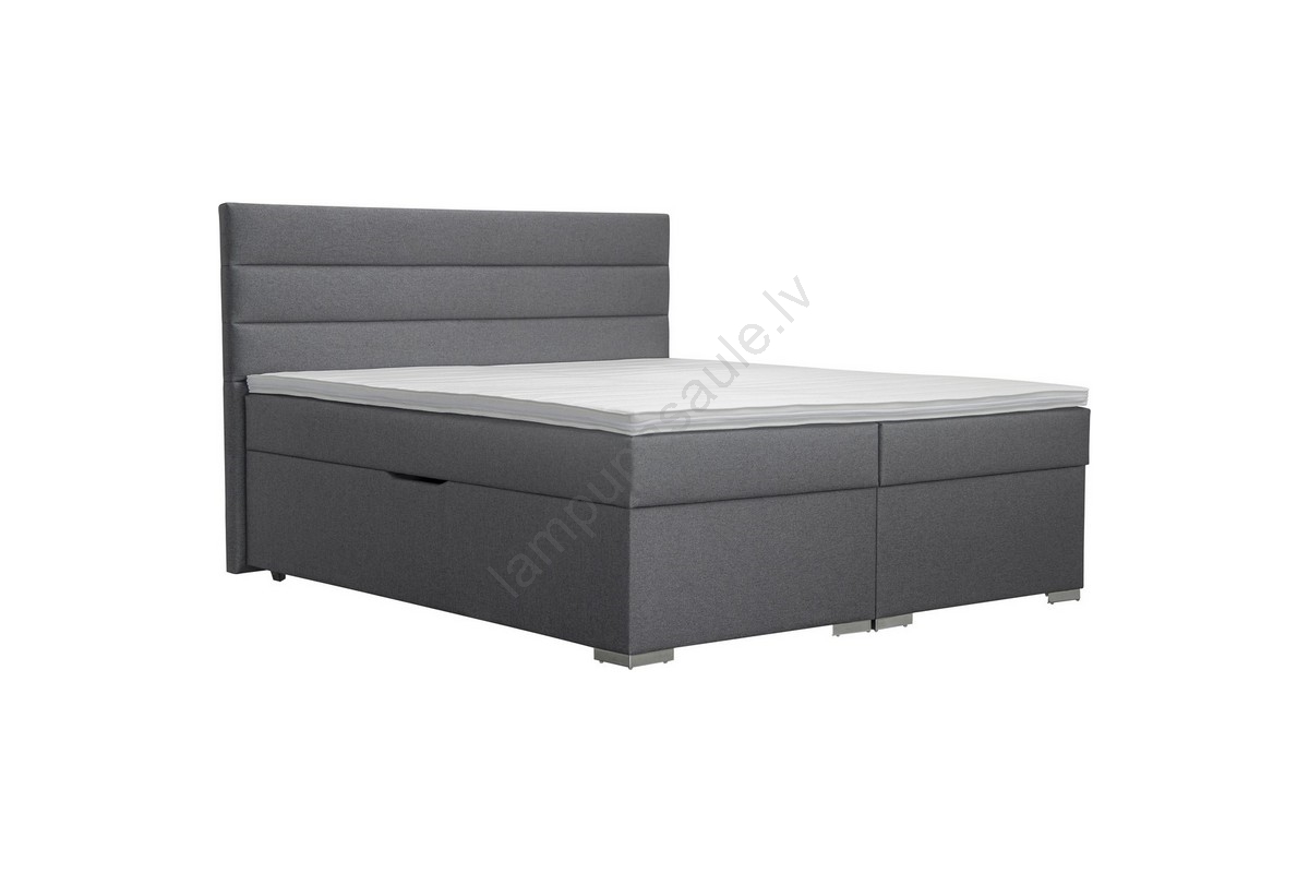 Polsterēta gulta ar uzglabāšanas vietu un matračiem ar virsmatraci NEW BOLERO 180x200 cm pelēka