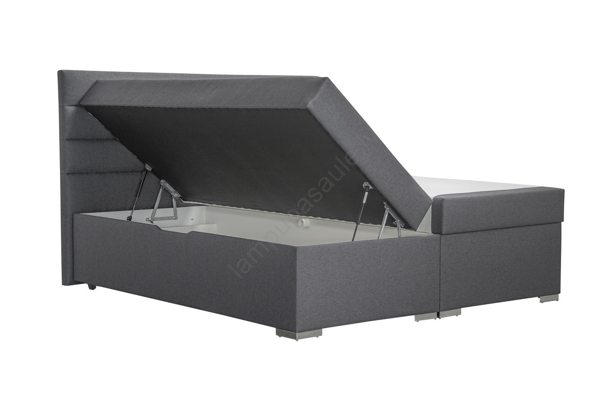 • Praktiska priekšrocība ir liels uzglabāšanas nodalījums, kas nodrošina pietiekami daudz vietas gultas veļas vai citu priekšmetu uzglabāšanai, tādējādi veicinot telpas efektīvu izmantošanu guļamistabā.