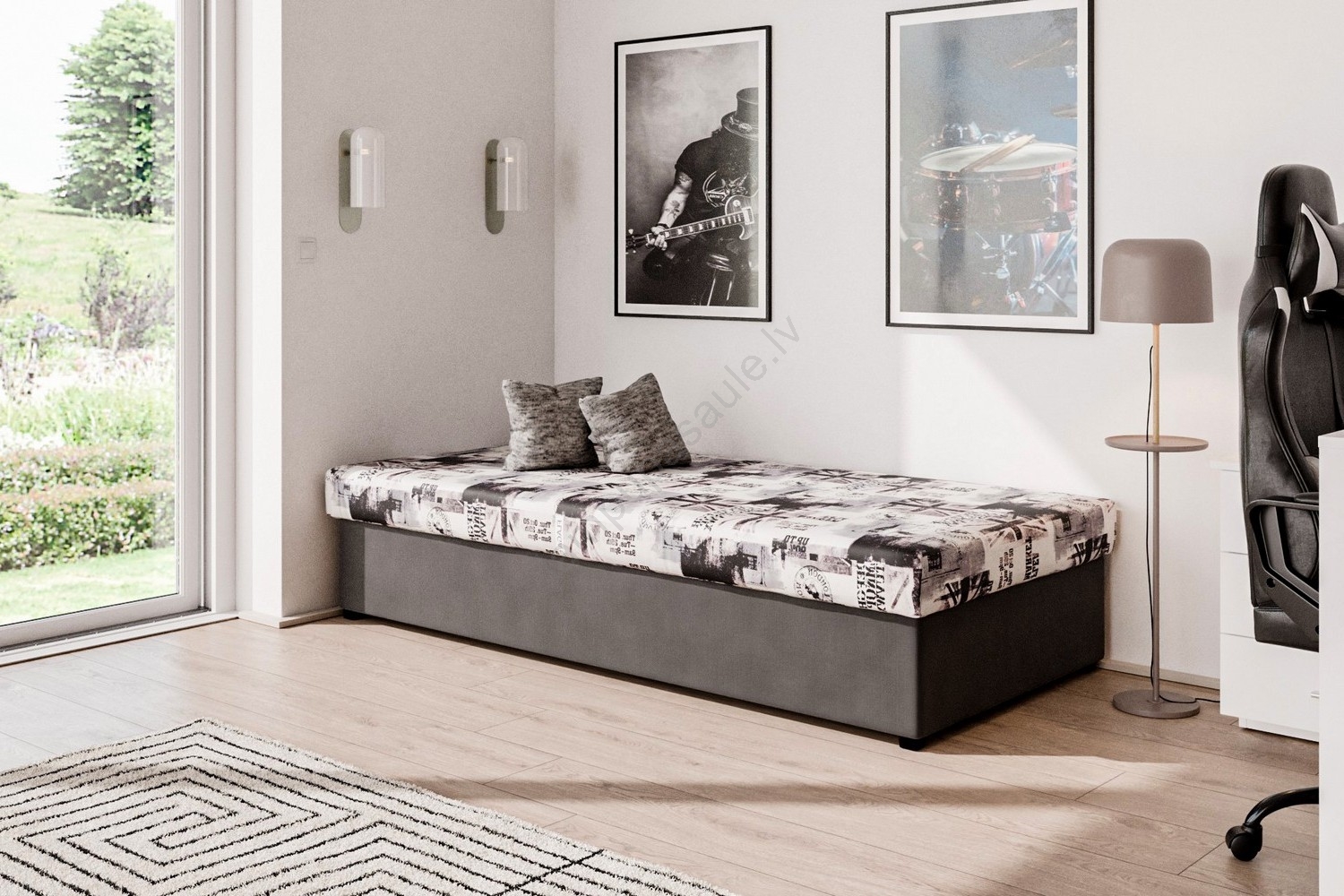 Gulta NOE 90x200 ar atsperu matraci un uzglabāšanas nodalījumu, pelēka/melna