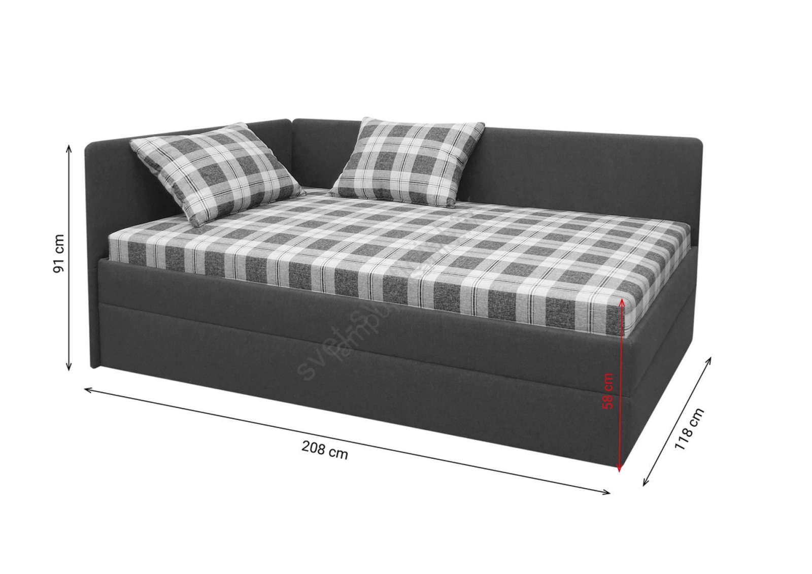 Tapisēta dienasgulta ar universālu kreisās/labās puses gultas galvgali ARLY 110x200 cm antracīta/bal