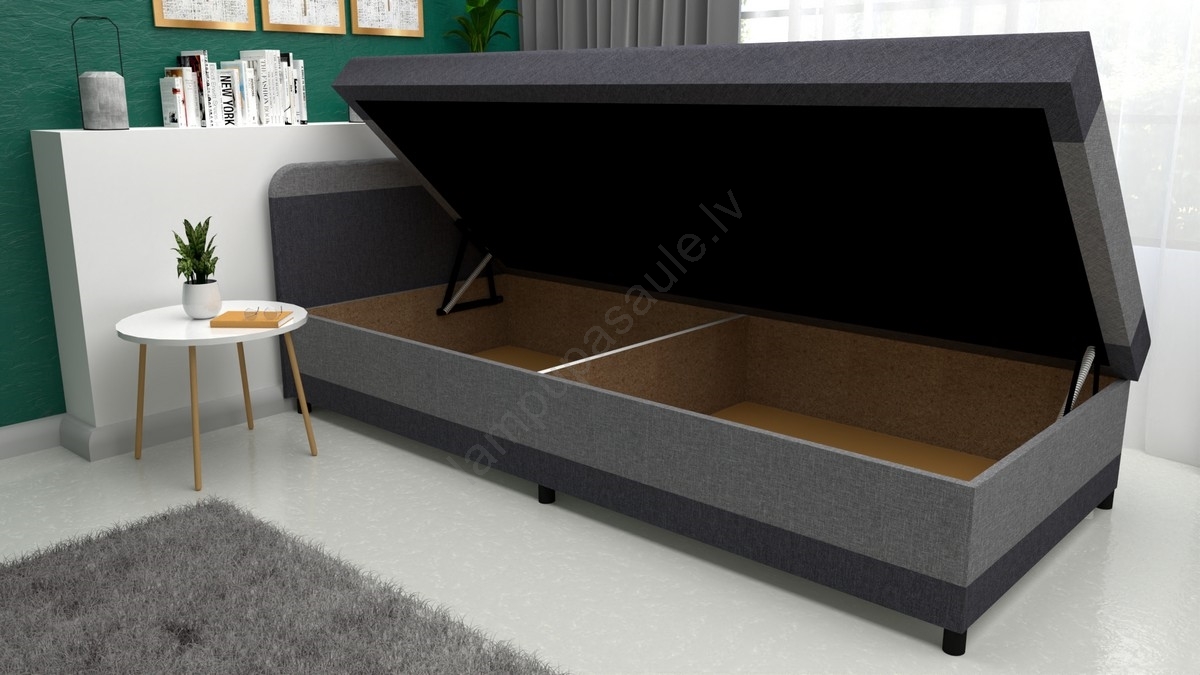 • Polsterēta dīvāngulta ar uzglabāšanas nodalījumu TALI 80x202 pelēka/antracīts