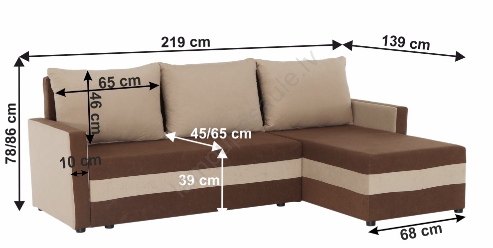 • universālā konstrukcija ļauj uzstādīt stūra dīvānu gan labajā, gan kreisajā pusē, atkarībā no jūsu viesistabas izkārtojuma.