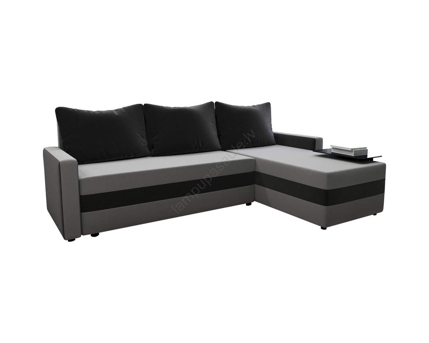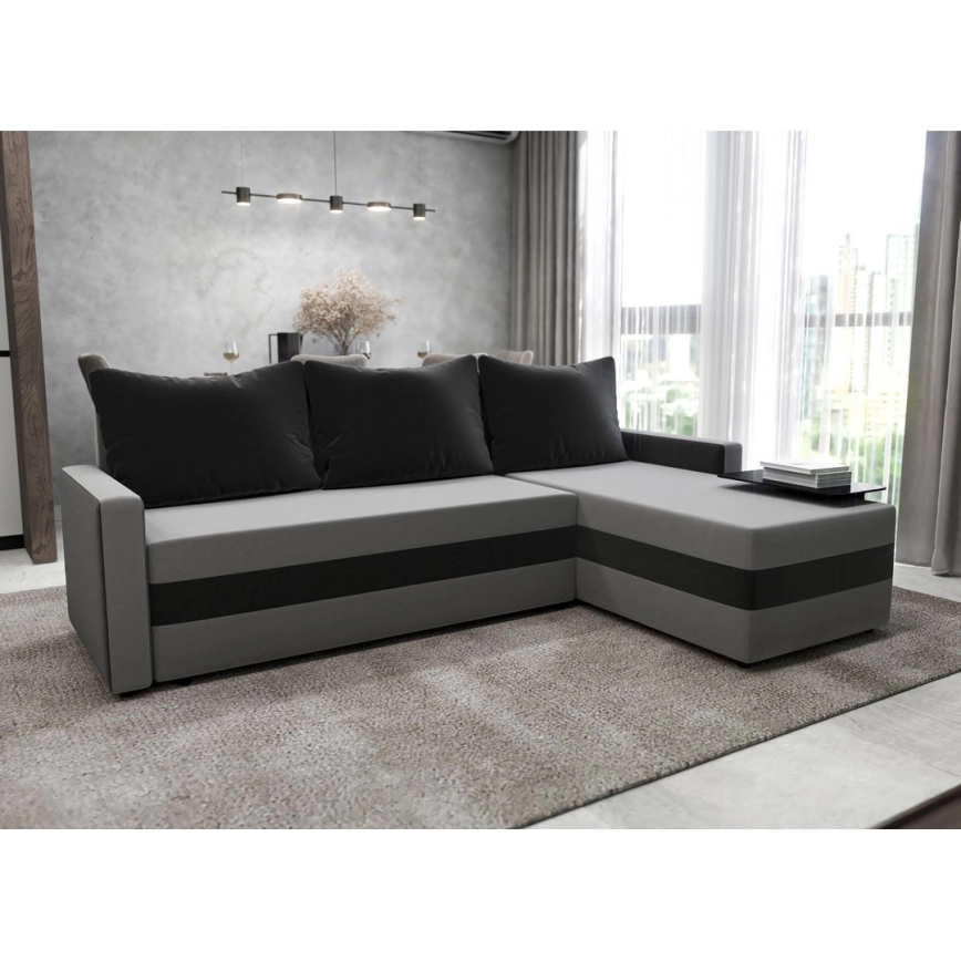 Polsterēts universāls izvelkams L-formas stūra dīvāns BRISTOL pelēks/melns | Lampupasaule