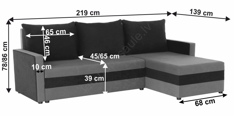 • Tās univerzālā konstrukcija ļauj montēt stūra dīvānu uz labo vai kreiso pusi atkarībā no jūsu viesistabas izkārtojuma.