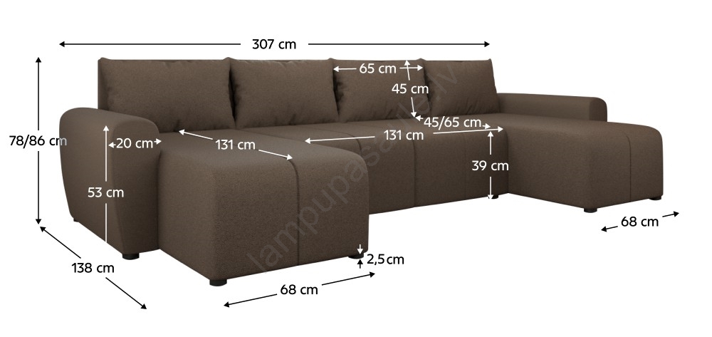 • Ja meklējat mūsdienīga stila, ērtuma un funkcionalitātes kombināciju, U formas stūra dīvāns NEWPORT ir universāls risinājums plašām viesistabām, kas piesaista uzmanību ar savu dizainu un praktiskumu.