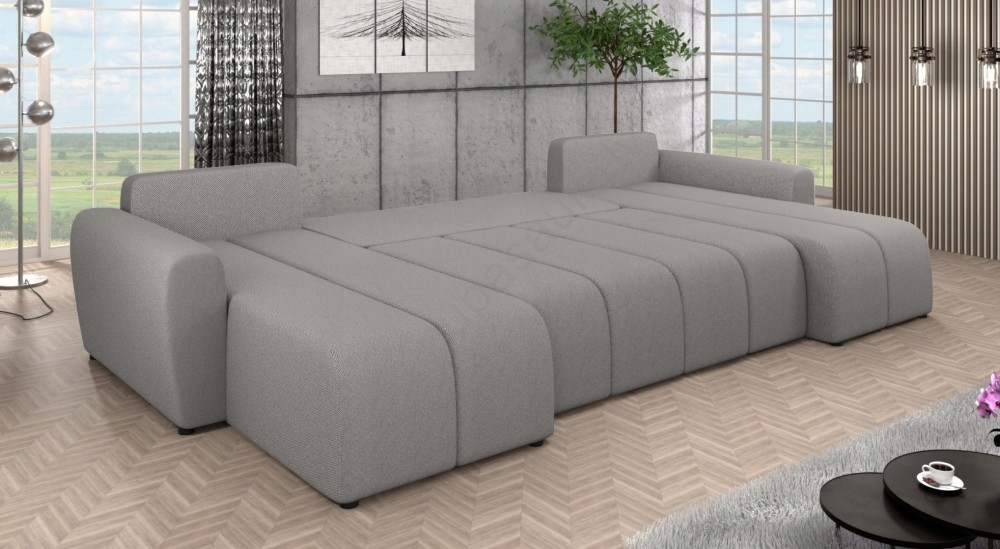 Polsterēts universāls izvelkamais U formas dīvāns NEWPORT, pelēks | Lampupasaule