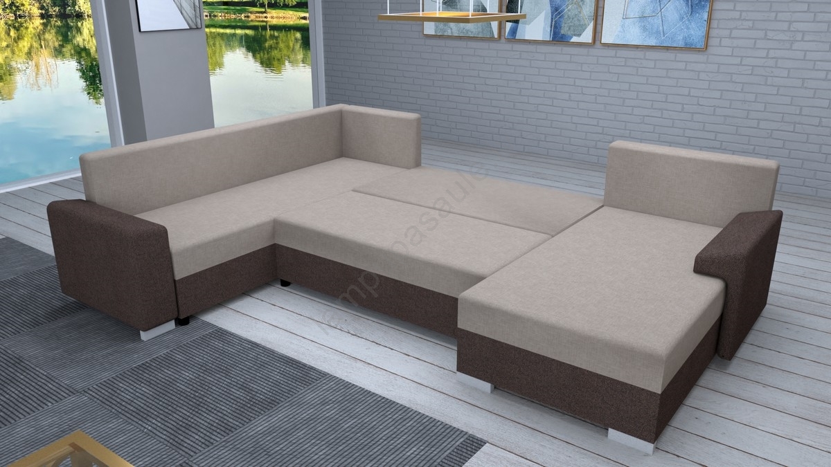 • Universāls polsterēts U-veida izvelkamais dīvāns OXFORD, brūns/taupe