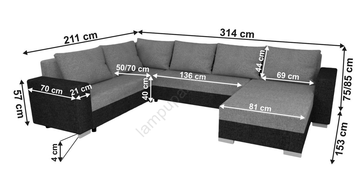 • Universāls polsterēts U formas izvelkamais dīvāns YORK, pelēks/melns
