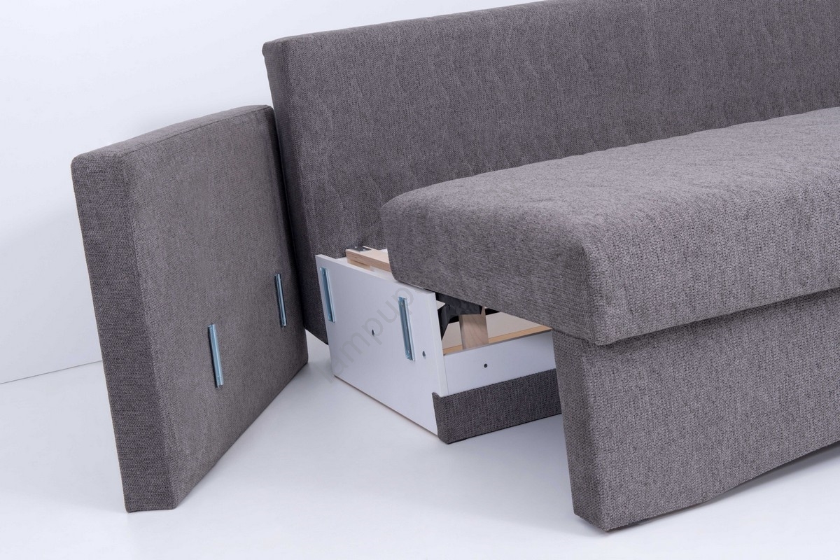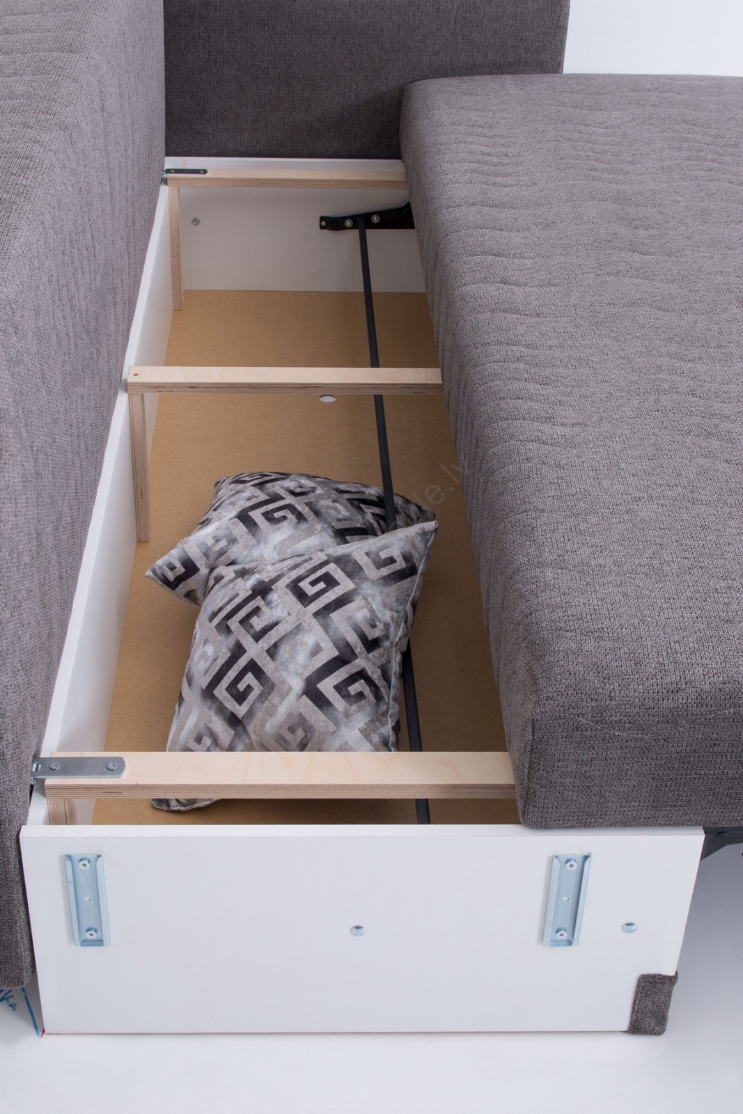 • Dīvāna sastāvā ir liels uzglabāšanas nodalījums, kas ir ideāli piemērots gultas veļai vai citiem priekšmetiem.