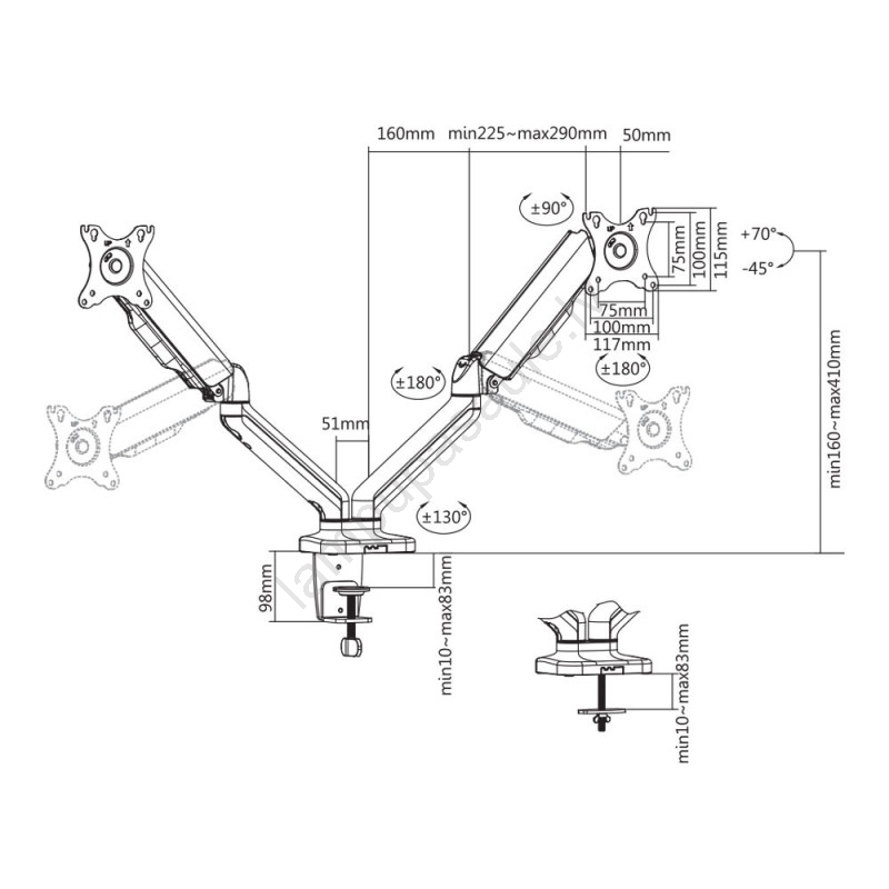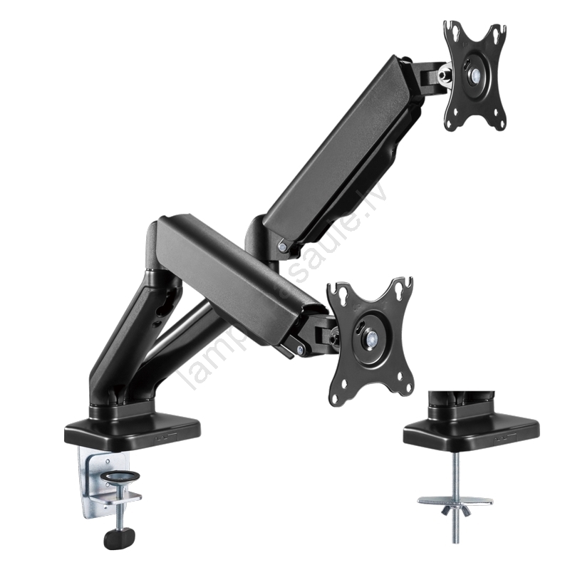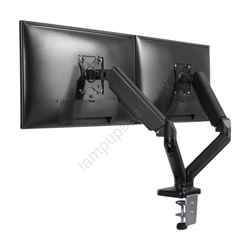 • Stiprinājums piemērots diviem monitoriem (datoriem vai klēpjdatoriem) un nelielām TV līdz 32", kuru svars nepārsniedz 9 kg.