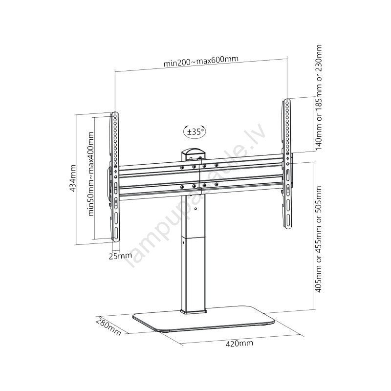 • Ar 75° pagriešanās iespēju (+35° līdz -35°) varat precīzi pagriezt televizoru atbilstoši savām vajadzībām.