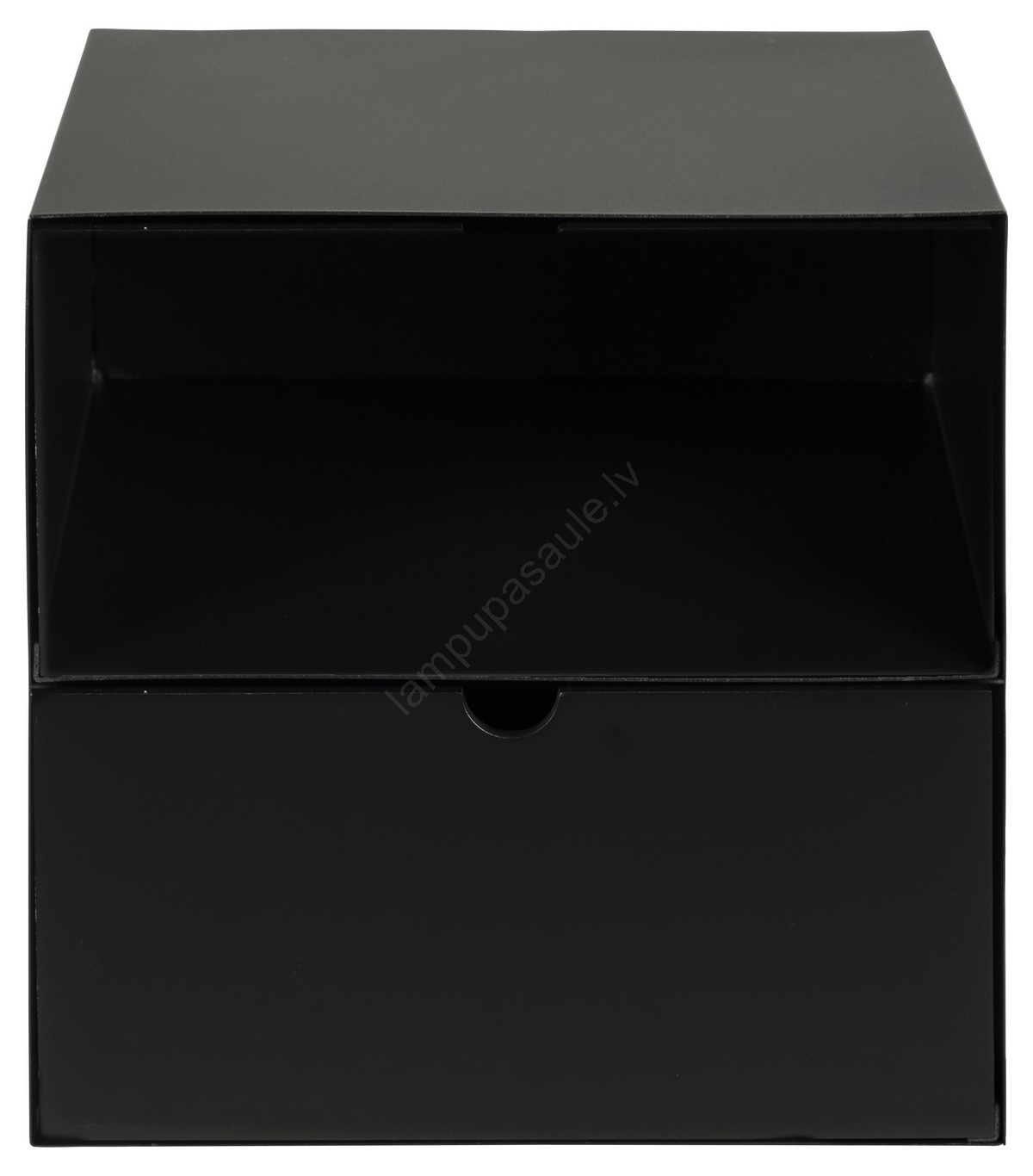 • Augšējā virsma un rāmis ir matētā melnā krāsā, izgatavoti no rupji pulverkrāsota tērauda; atvilktne ir melna, ar atvērtu nodalījumu un paredzēta sienas stiprināšanai.