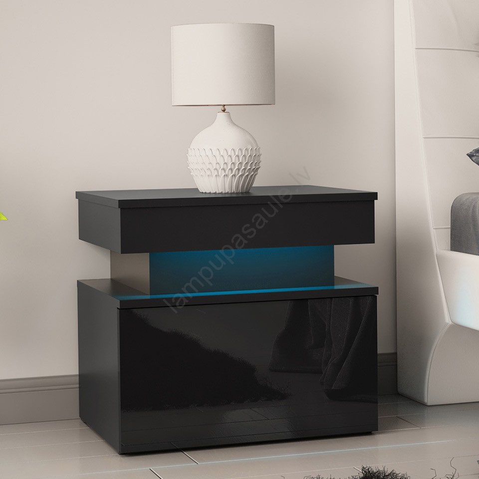 Naktsgaldiņš GLOSSA ar LED apgaismojumu 51x55 cm melns/spīdīgs melns