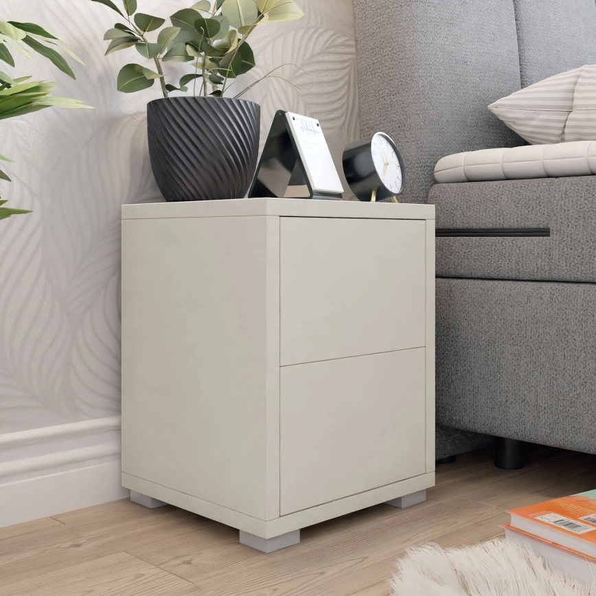 • Ieviesiet savā guļamistabā smalku eleganci ar šo kompakto naktsgaldiņu trendīgā tonī kašmīra.