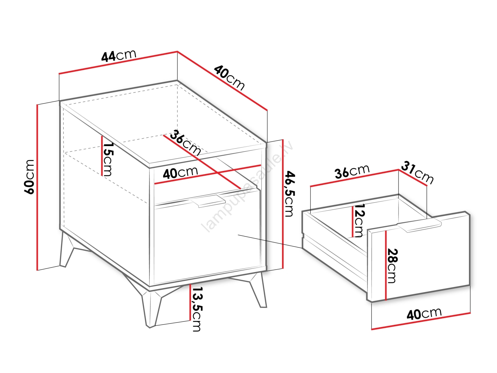• Naktsgaldiņš ar praktisku atvilktni lietu glabāšanai, kuras vēlaties turēt pie gultas pa rokai.
