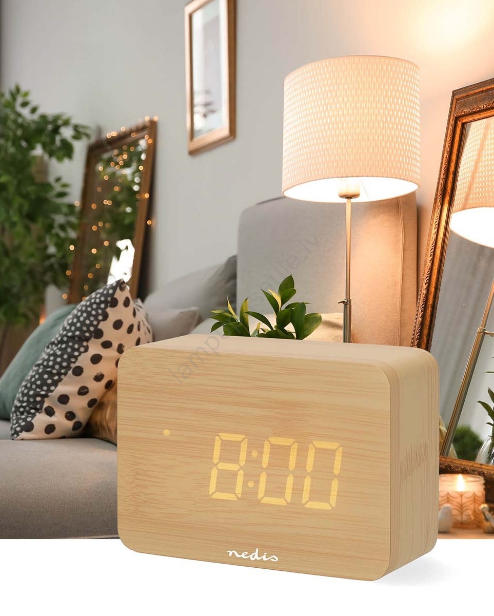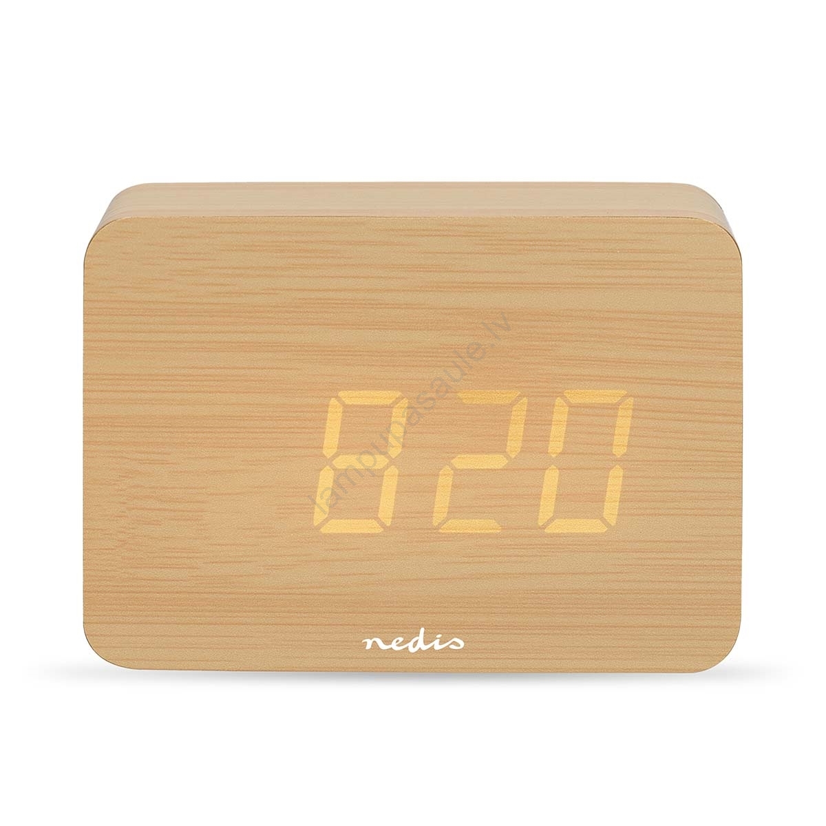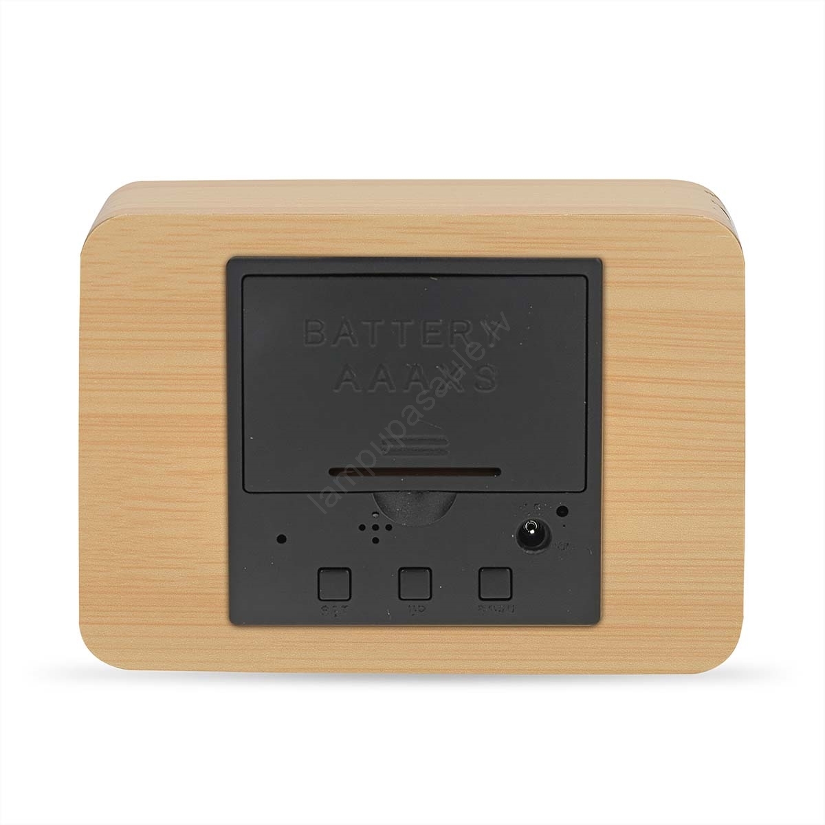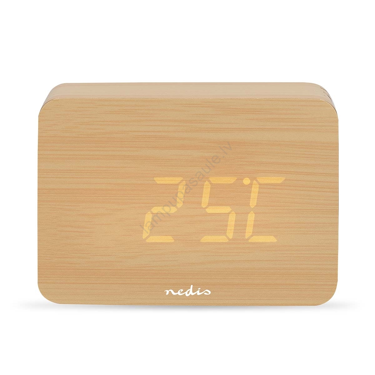 Digitālais modinātājs ar LED displeju un termometru, 5V/3xAAA, koka