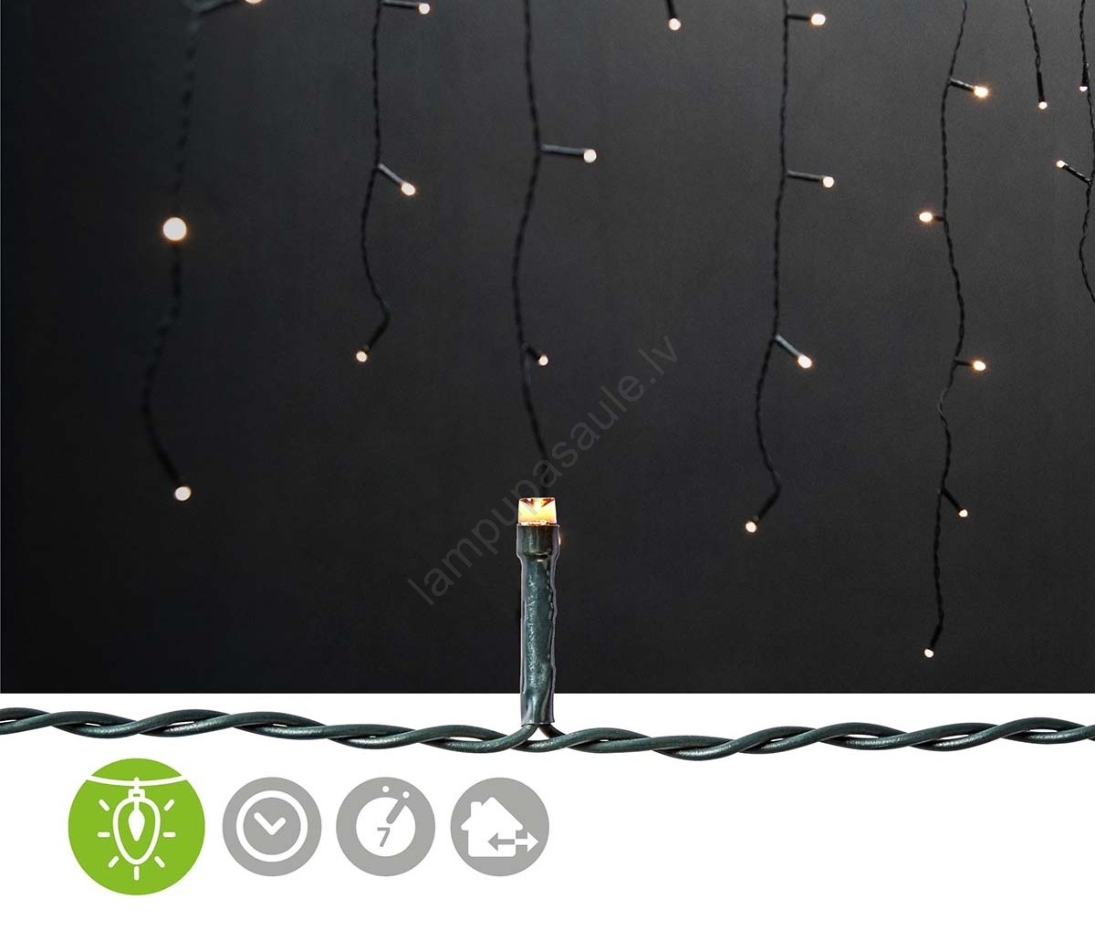 • Ar 5 metrus garo barošanas vadu jūs varat piekārt lampiņas, kur vien vēlaties.