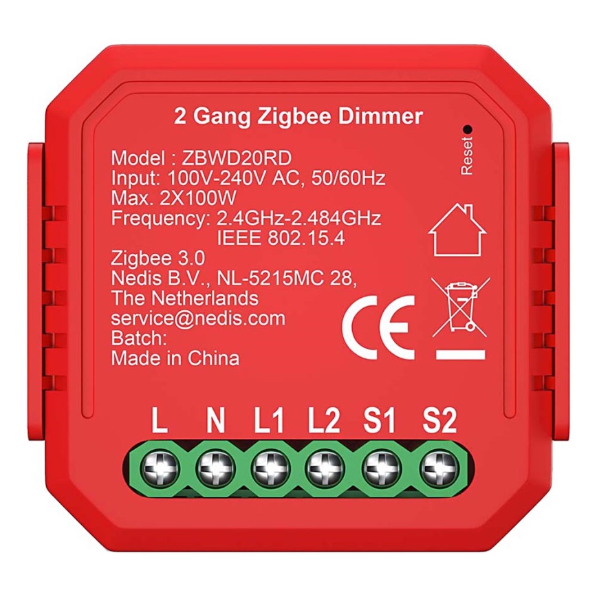 Nedis ZBWD20RD - Vieds divkanālu apgaismojuma regulators SmartLife 230V | Lampupasaule