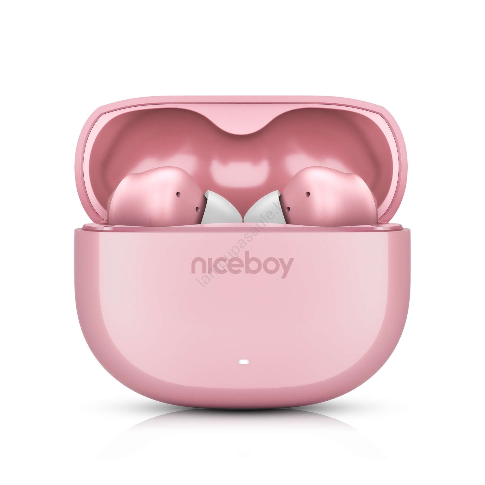 Niceboy Pins 4 - Bezvadu austiņas ar ANC, 400 mAh + 2x 50 mAh, IPX4, rozā | Lampupasaule
