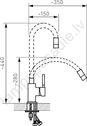 • Praktiska elastīga izlietnes šļūtene atvieglo trauku un visas izlietnes mazgāšanu.