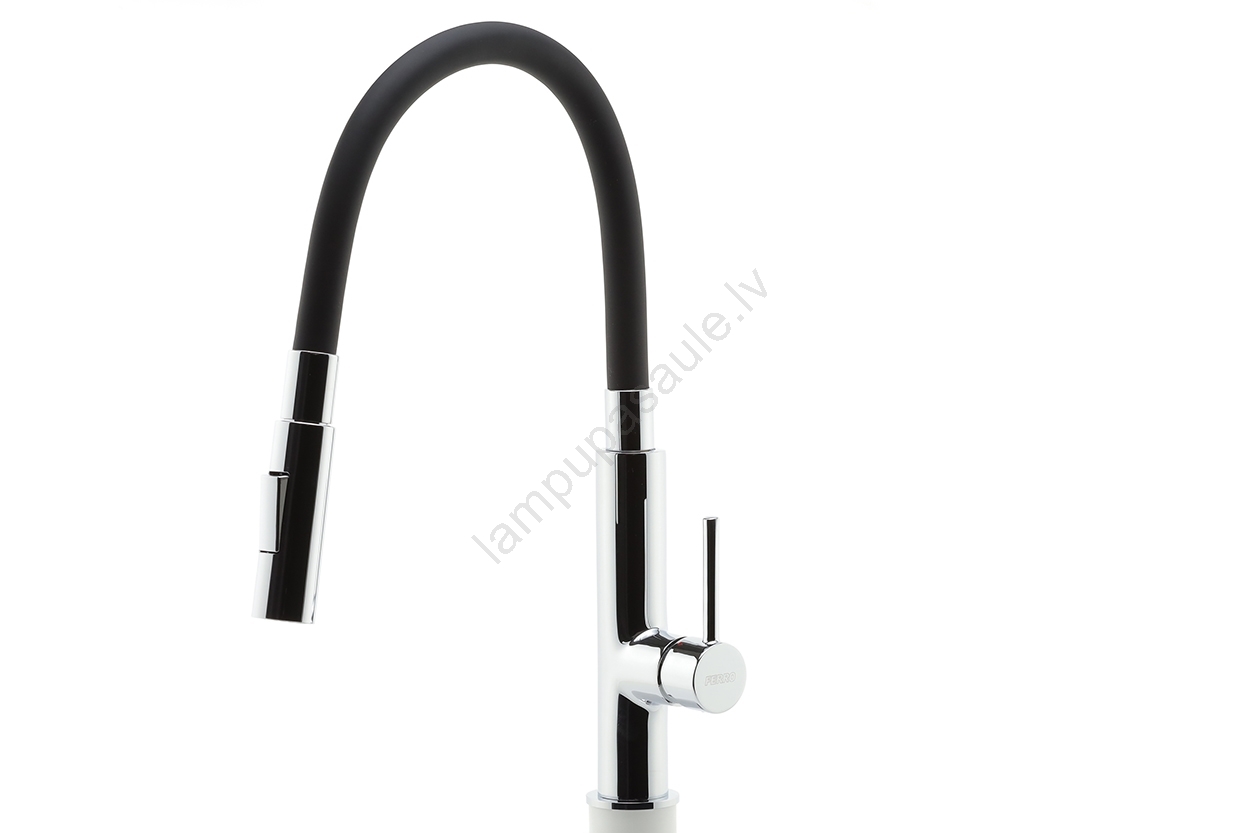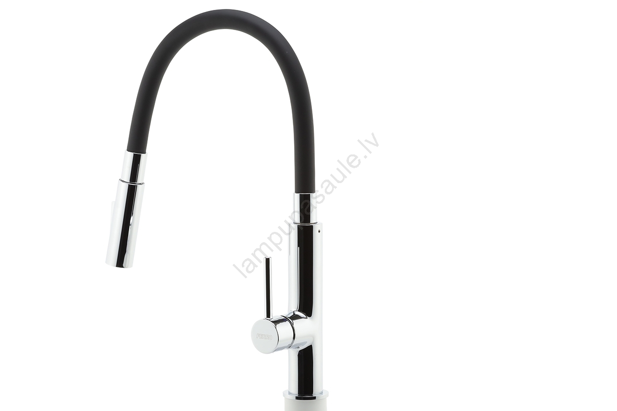 FERRO - Izlietnes krāns ar lokanu statīvu spīdīgi hromēts/melna | Lampupasaule