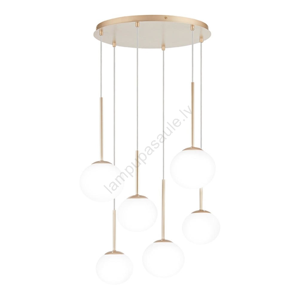 Ondaluce - Karājoša lustra uz troses JEWEL 6xE14/10W/230V Ø 55 cm zelta/balta izceļas ar jauku un funkcionālu dizainu.  Spuldze ar E14 cokolu irpiemērota lampai. Šeit, varat iegādāties citas spuldzes par izdevīgām cenām. Tā būs interesants jūsu mājas papildinājums.