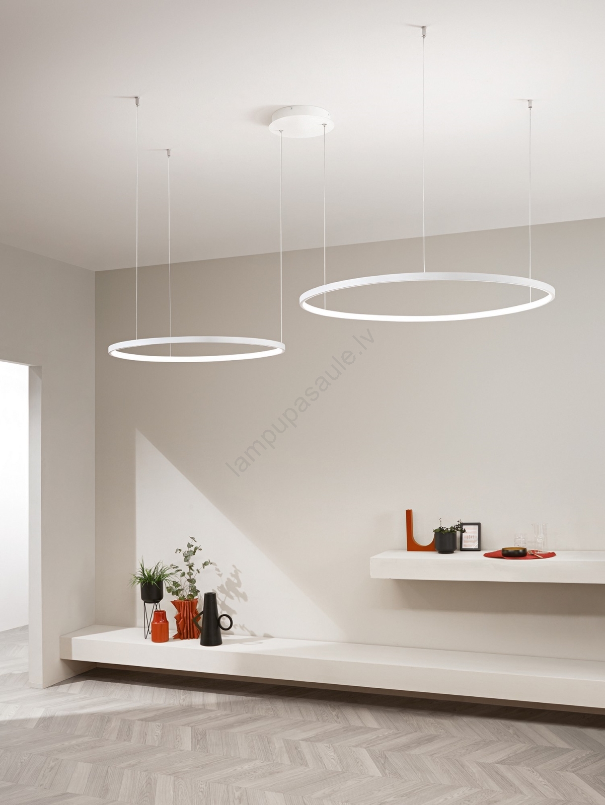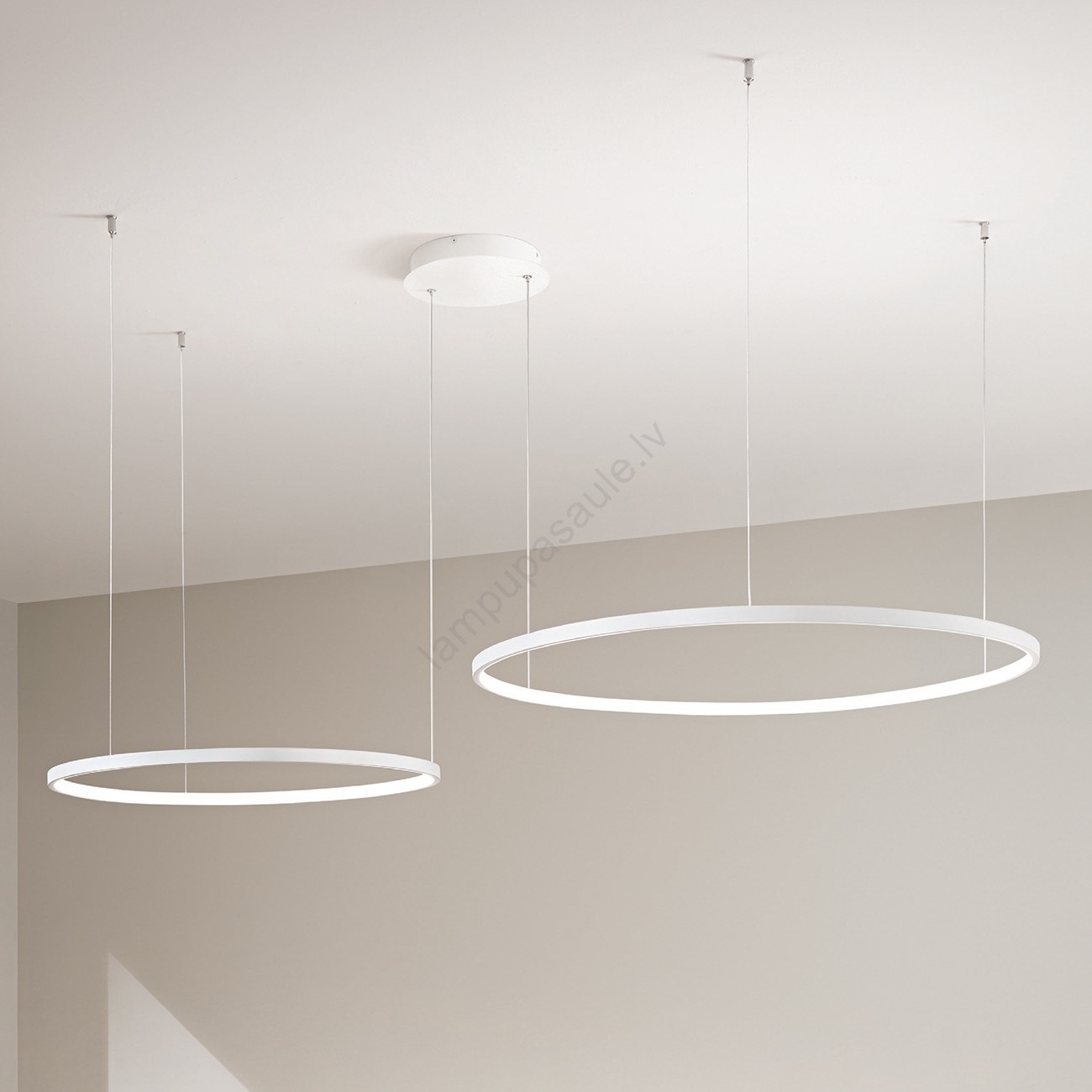 Ondaluce - regulējama LED pakaramā lustra uz kabeļa SOEL LED/28W/230V + LED/38W Ø 80/60 cm balta