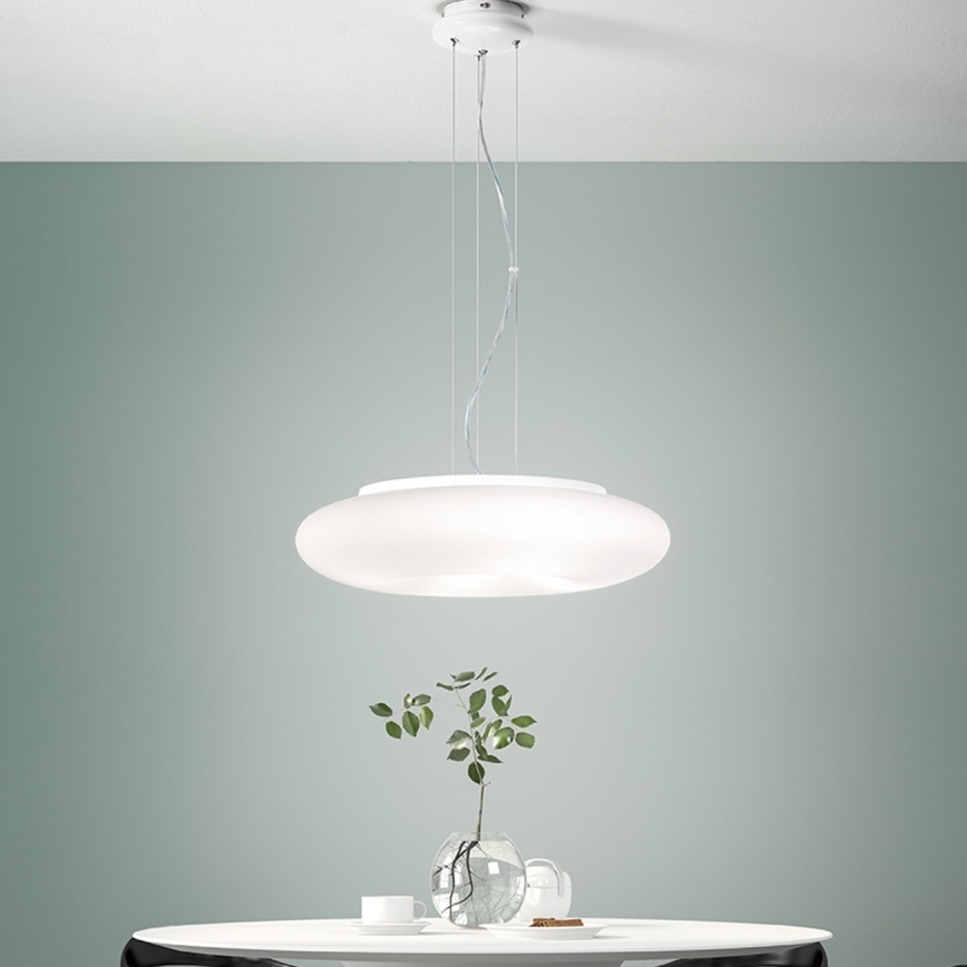 Ondaluce - Pakaramā lustra ar trosi DODI 2xE27/15W/230V Ø 53 cm balta izceļas ar jauku un funkcionālu dizainu.  Spuldze ar E27 cokolu irpiemērota lampai. Šeit, varat iegādāties citas spuldzes par izdevīgām cenām. Tā būs interesants jūsu mājas papildinājums.