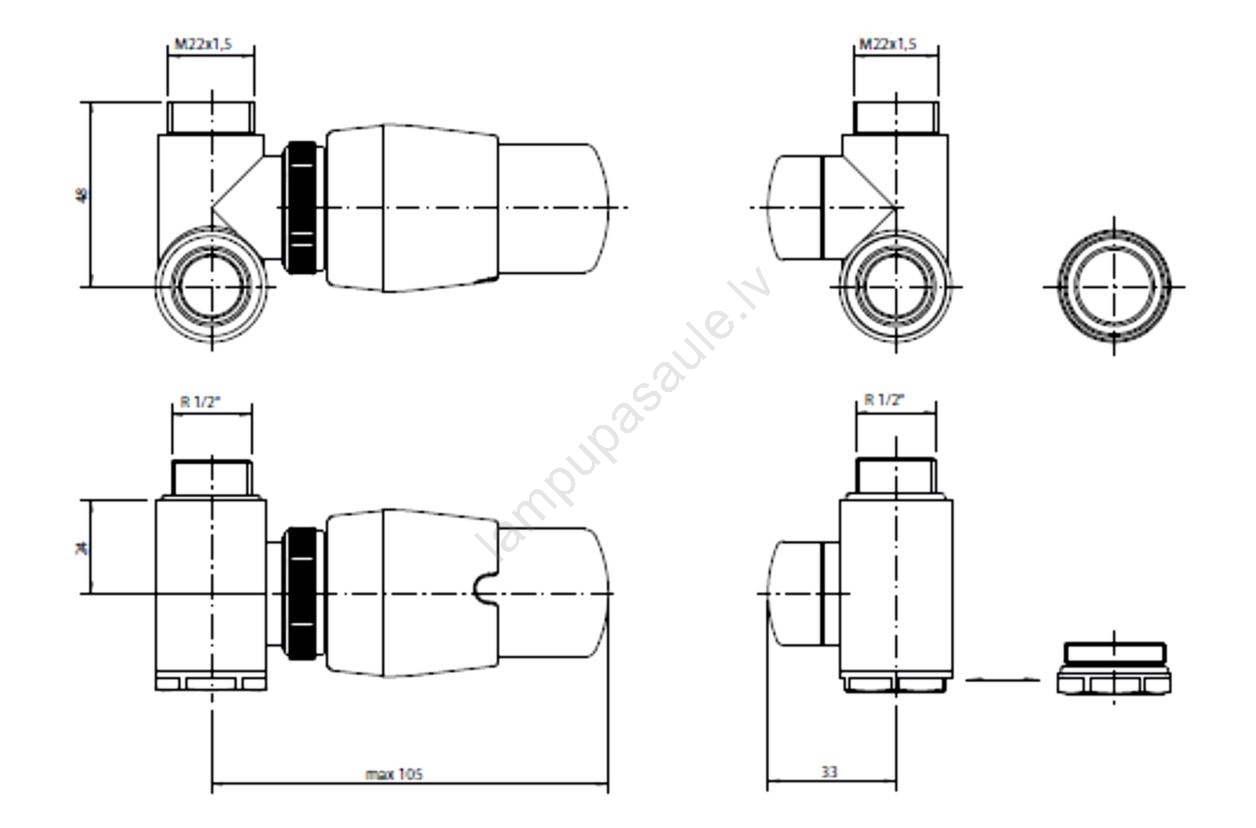 P.M.H. INTER-LB - Vārsts ar termostatisko galviņu INTER kreisais/melns | Lampupasaule