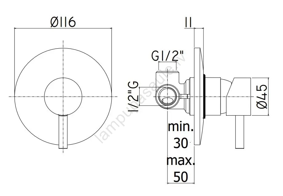 • Iebūvējamais dušas jaucējkrāns ar montāžas korpusu komplektā.