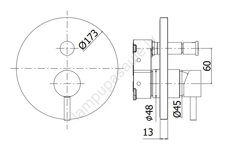 • Iebūvējamais dušas jaucējkrāns ar pārslēdzēju ūdens izvades izvēlei.