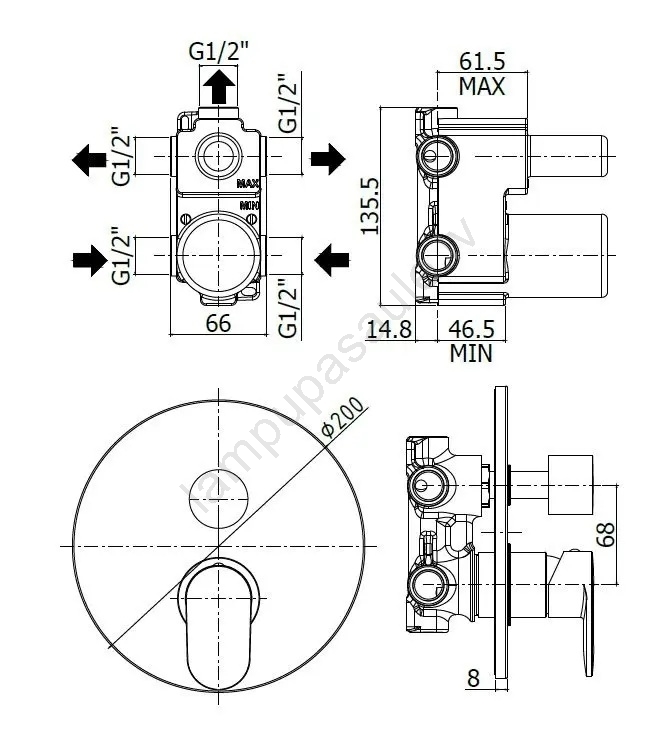 • Piemērota dušas komplektiem ar iespēju pārslēgties starp vairākām izejām.
