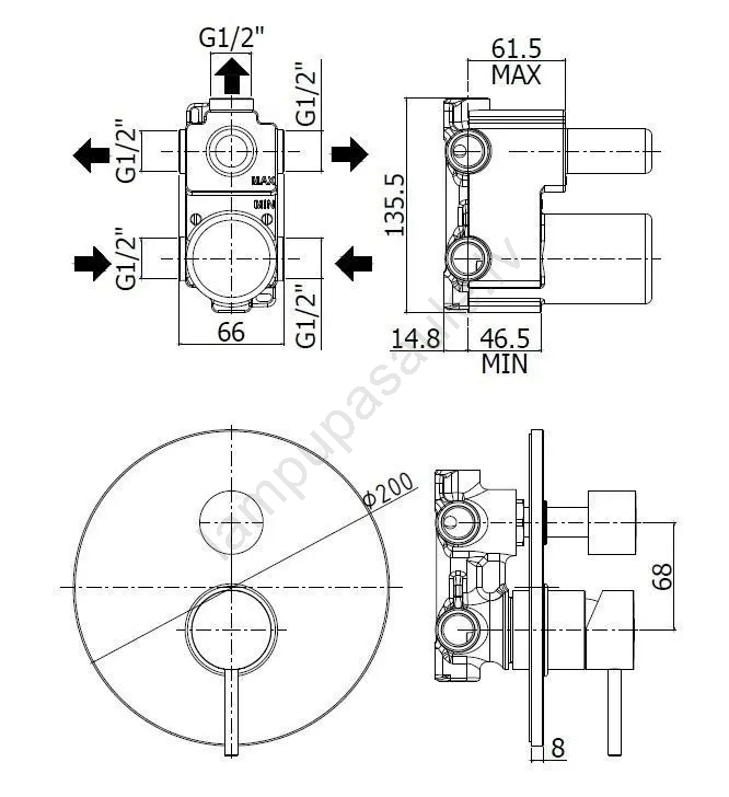 • Iebūvējamais trīsvirzienu sviras dušas jaucējkrāns no Paffoni Light sērijas.