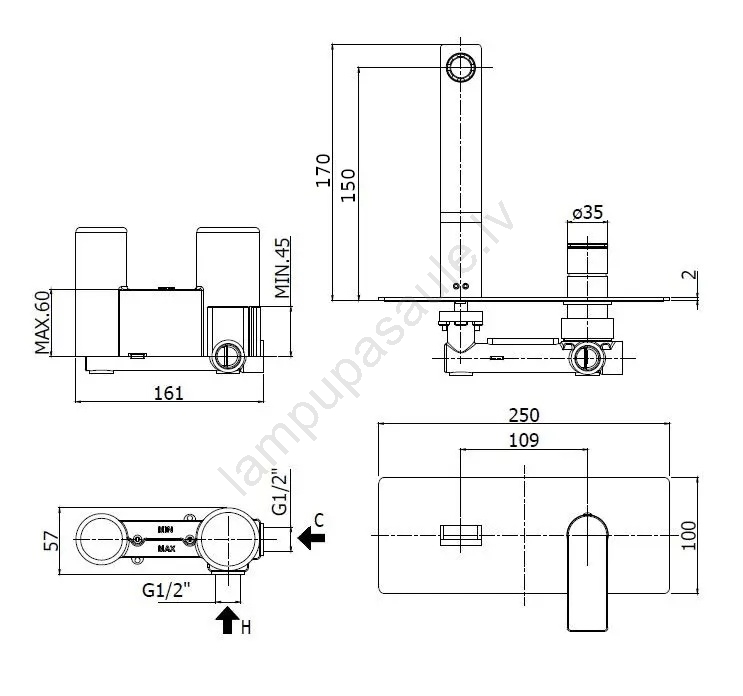 Paffoni - TANGO iebūvējams izlietnes jaucējkrāns, nerūsējošā tērauda
