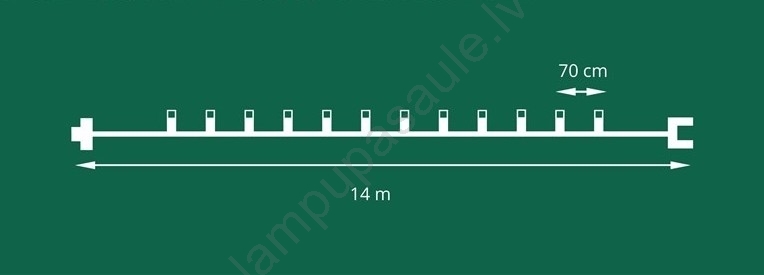 • Kopumā iespējams savienot līdz 4 pagarinājuma virtenēm, iegūstot gaismas virteni ar maksimālo garumu līdz 70 m.