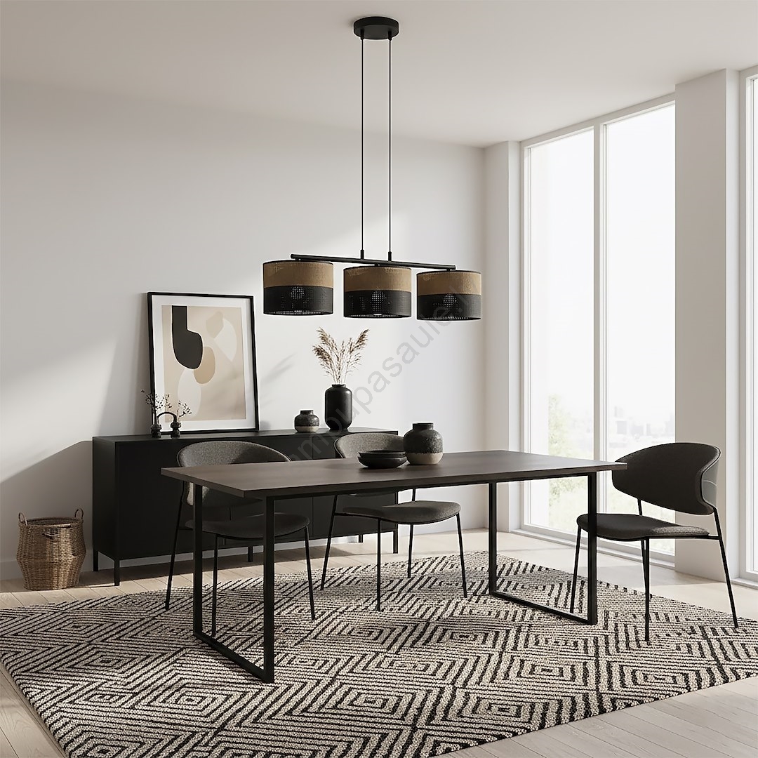 Pakaramā lampa uz kabeļa KARBON 3xE27/15W/230V melna/brūna izceļas ar jauku un funkcionālu dizainu.  Spuldze ar E27 cokolu irpiemērota lampai. Šeit, varat iegādāties citas spuldzes par izdevīgām cenām. Tā būs interesants jūsu mājas papildinājums.