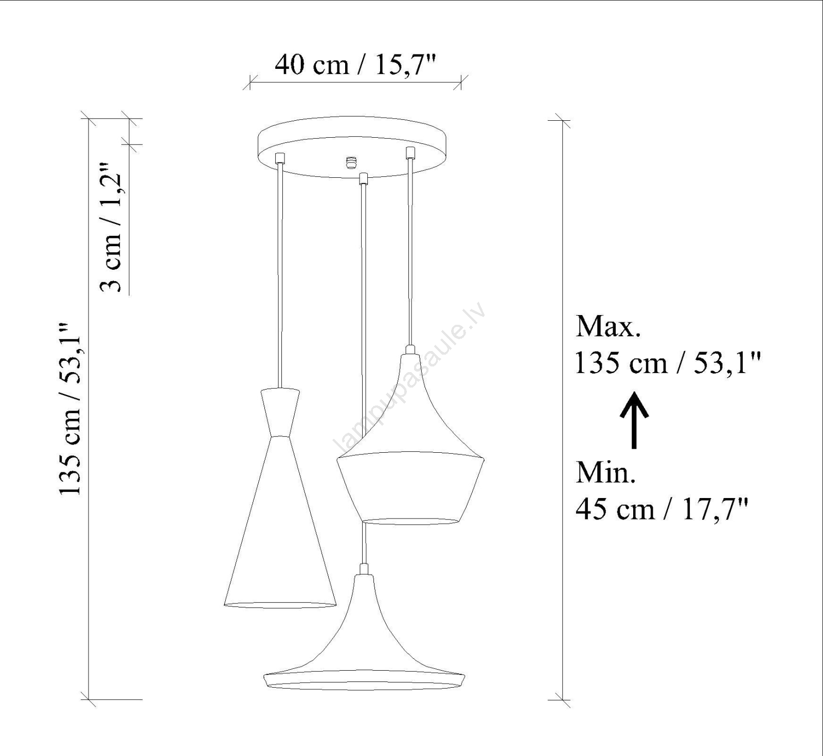 • Piekaramā lustra TOM ar trosi 3xE27/40W/230V, zila