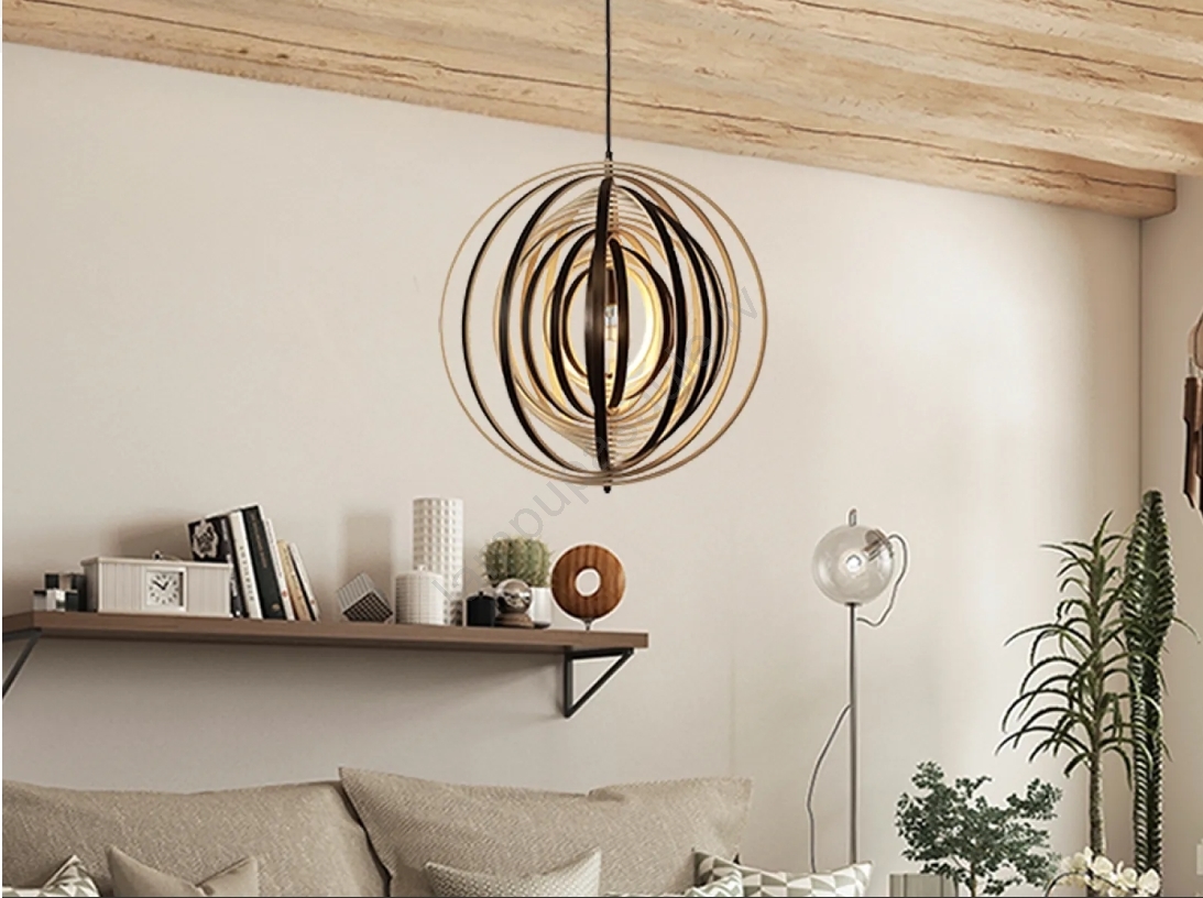 • Koka lustra uz troses 1xE27/60W/230V Ø 50 cm masīvkoks/finieris/kaučuk koks