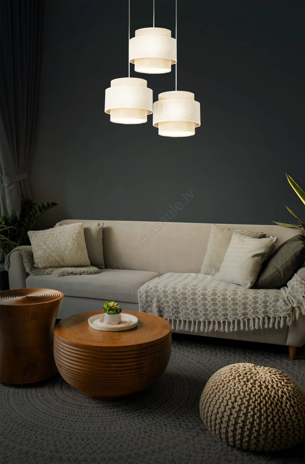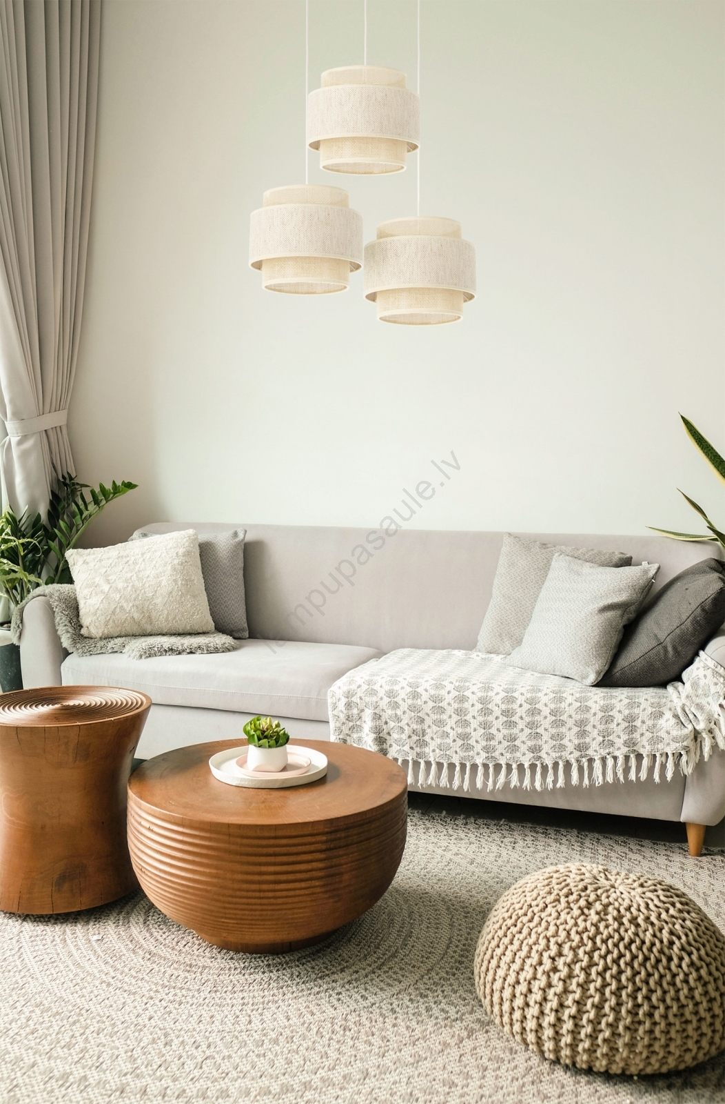 • Pakaramais gaismeklis BOHO ar vadu, 3xE27/60W/230V, balts/džuta