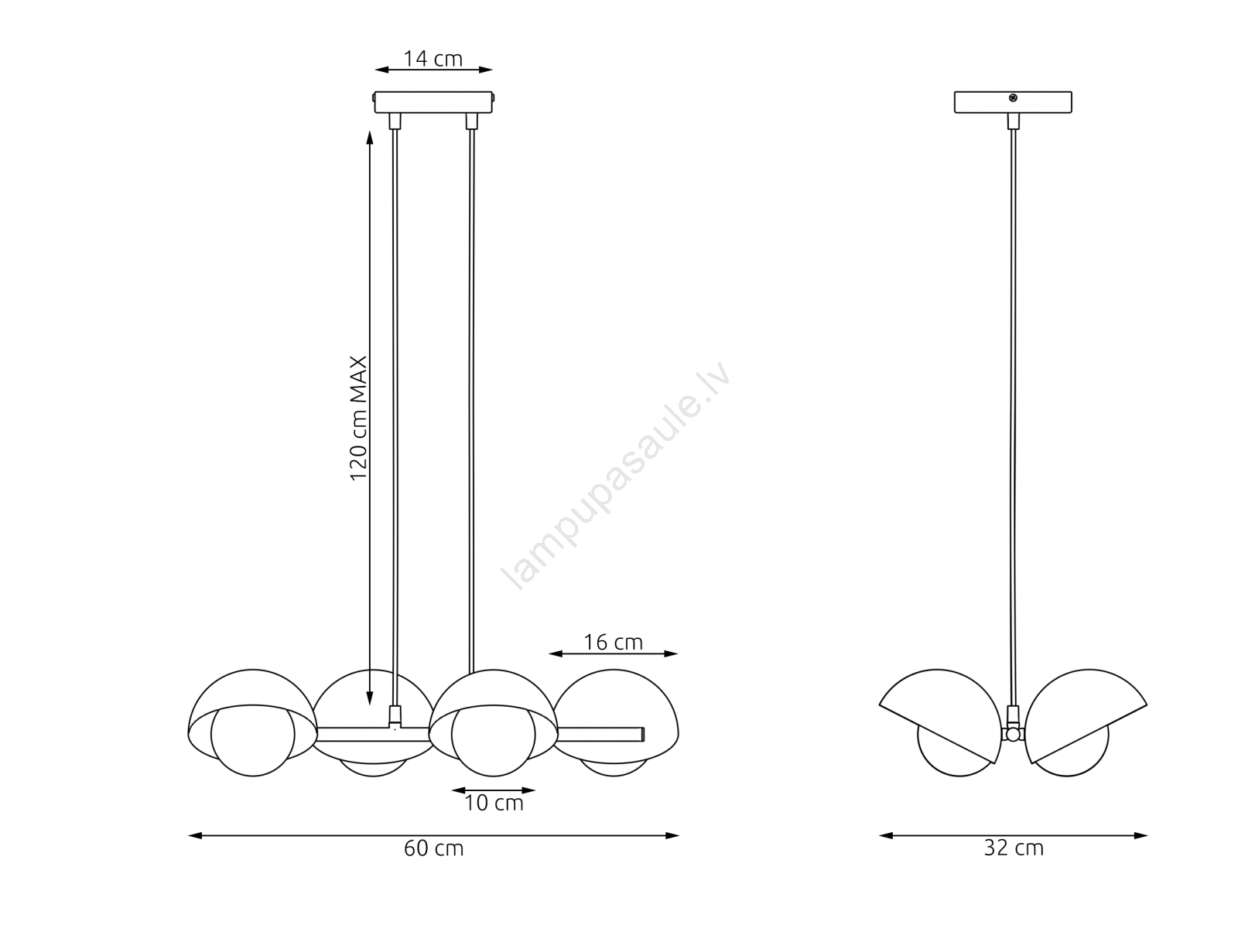 • Pakaramais gaismeklis BOOM uz kabeļa 4xG9/8W/230V, melns