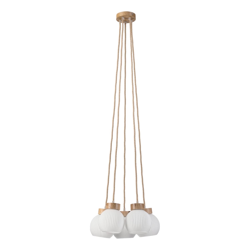 Pakaramais gaismeklis LOOMIS uz vada, 5xE27/15W/230V, 130 cm, bēšs/ozols