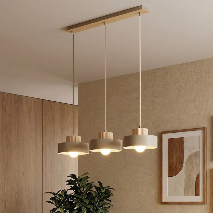 • Pakaramais lustrs ar kabeli KIVI 3xE27/15W/230V bēšs