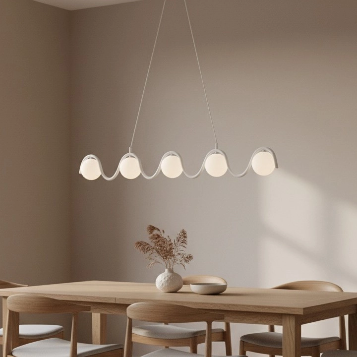 Pakarināmā lustra SINUS 5xG9/8W/230V balta izceļas ar jauku un funkcionālu dizainu.  Spuldze ar G9 cokolu irpiemērota lampai. Šeit, varat iegādāties citas spuldzes par izdevīgām cenām. Tā būs interesants jūsu mājas papildinājums.