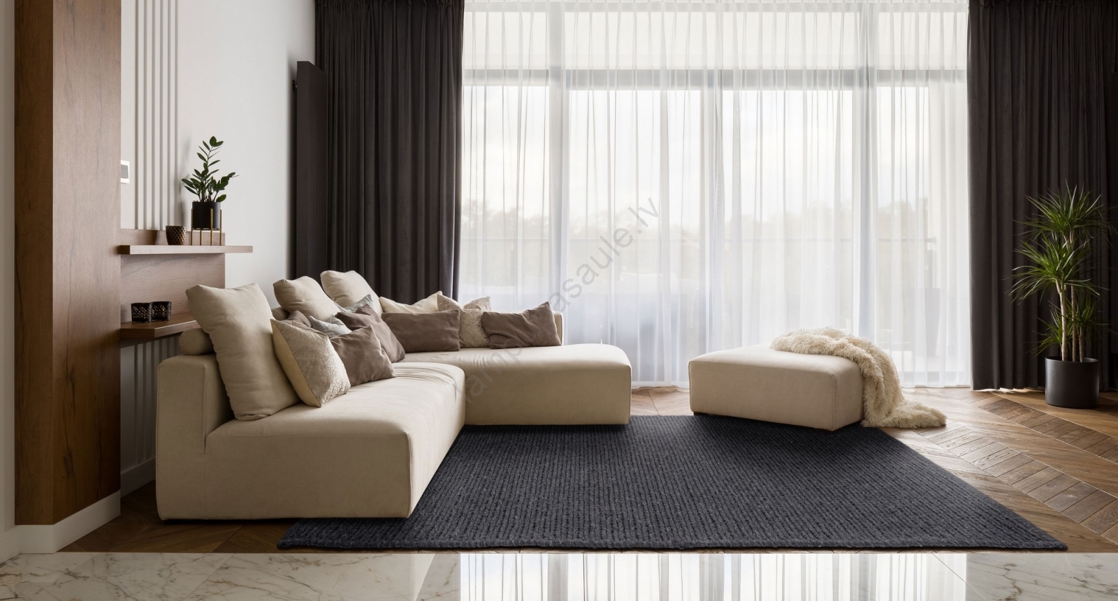 • Unikāls paklājs, kas apvieno vienkāršību, eleganci un funkcionalitāti.