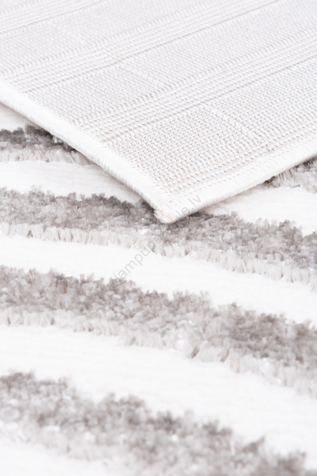 • Paklāja virsmā ir moderns ģeometrisks raksts un dažādi pūkas augstumi, kas piešķir tam 3D efektu.